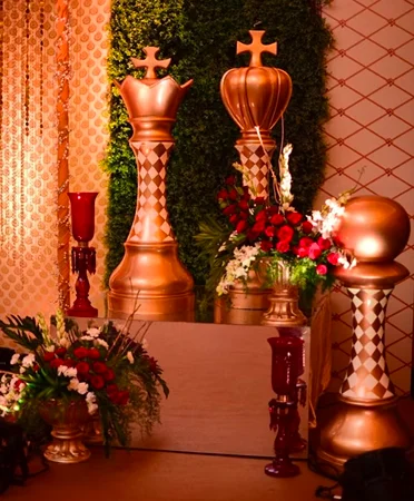 Raja Rani is a wedding concept rooted in royal Indian heritage — a tribute to kings, queens, and timeless traditions. This theme brings to life the grandeur of palaces, the richness of handwoven silks, and the golden glow of ceremonial splendor. From ornate seating setups and temple-style floral garlands to vintage throne chairs and Mughal-inspired backdrops, Raja Rani transforms your event into a scene from a royal court. It’s a celebration where culture meets charisma, designed for couples who want to feel like true royalty on their big day.