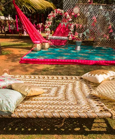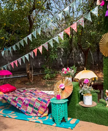 Uff Teri Nazar is a wedding theme for the bride who doesn’t just walk in — she makes an entrance. Inspired by iconic Bollywood romance, this concept is all about drama, flirtation, glam lighting, and over-the-top charm. It’s not a wedding… It's a blockbuster. From retro signage and neon quotes to glittering photo walls and diva-style vanity corners, every detail celebrates the inner superstar in you. It’s for the lovers who want more sass than subtlety and a celebration filled with flashbulbs, fun, and flair.
